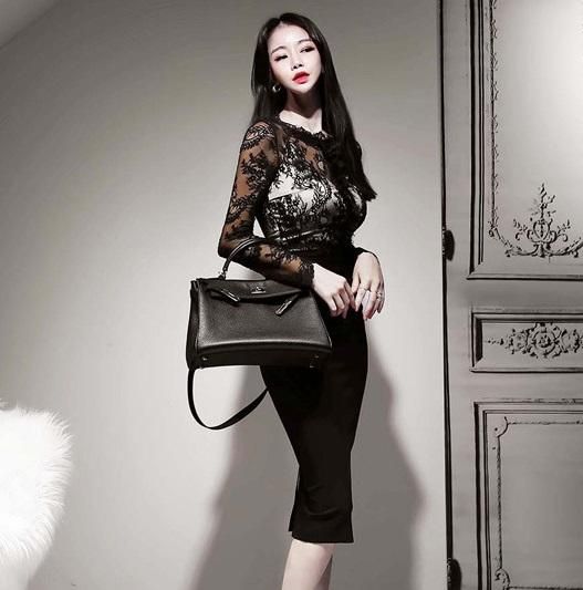 フェミニンな繊細レース◇切り替えデザイン タイトワンピース 2色