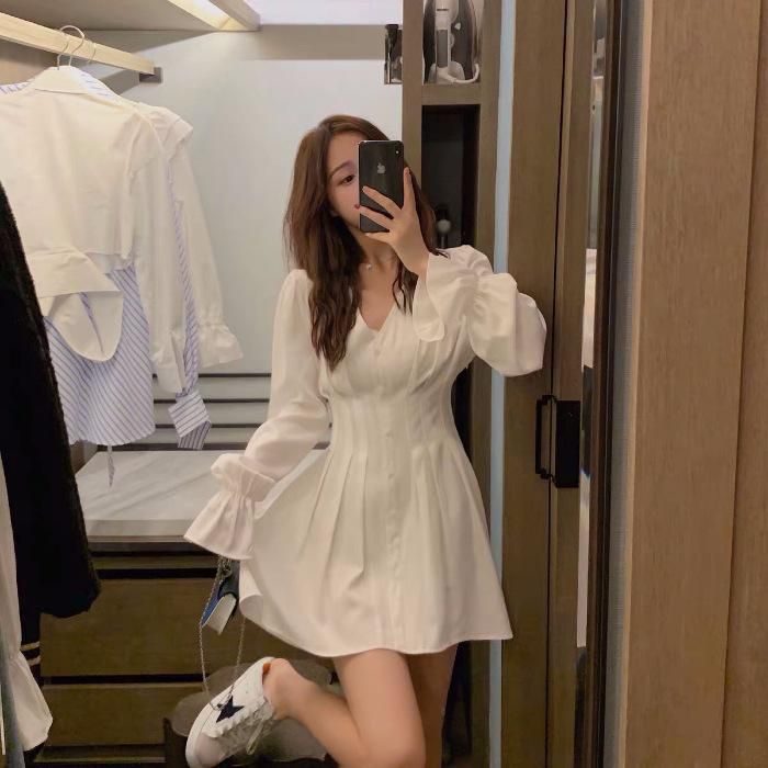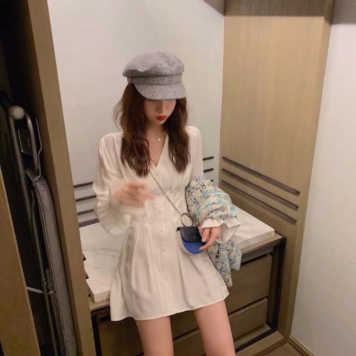 大人ガーリー♪袖コン Aライン ミニシャツワンピース