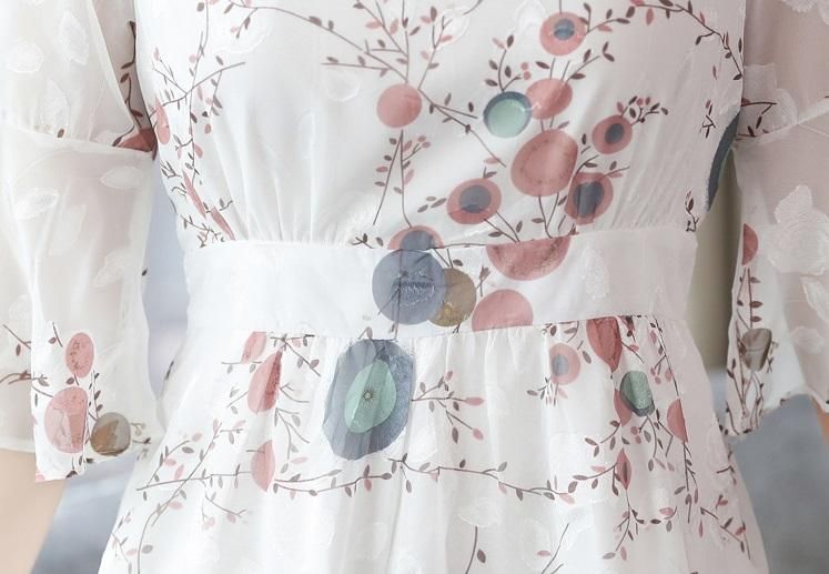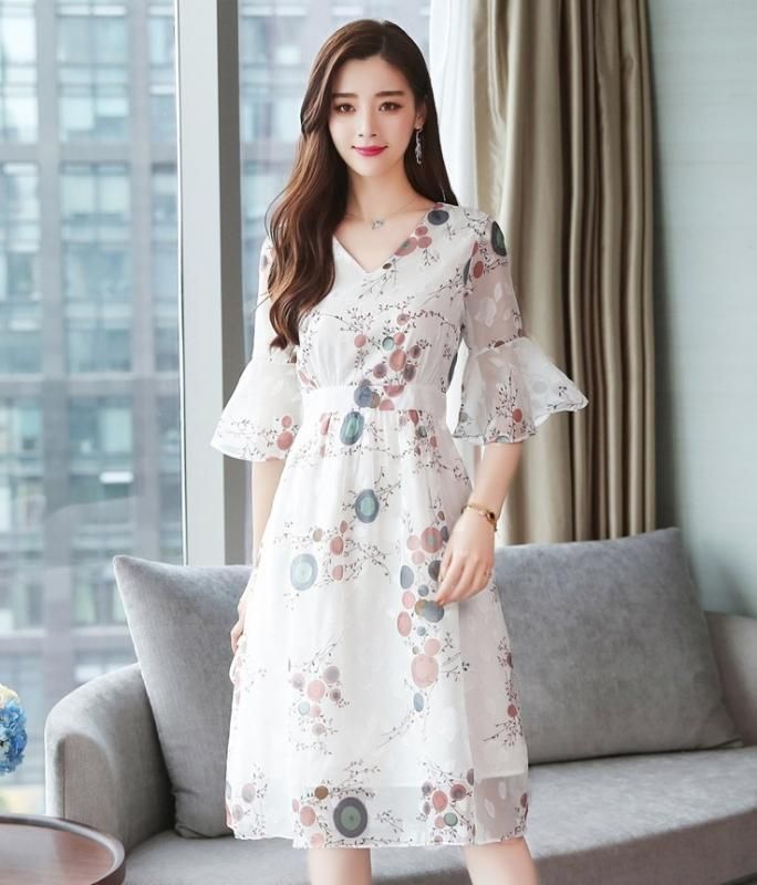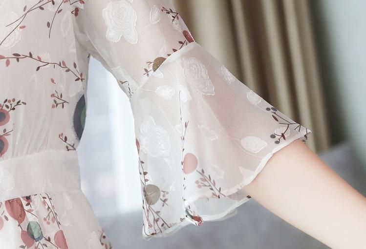 上品かわいいフレアシルエット◇シフォン ミディ丈ワンピース 大きいサイズあり