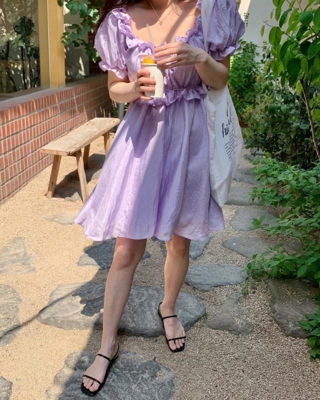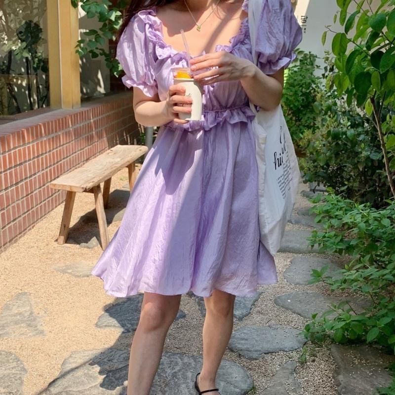 キュートなパフスリーブ&フリル♪リゾート ミニフレアワンピース