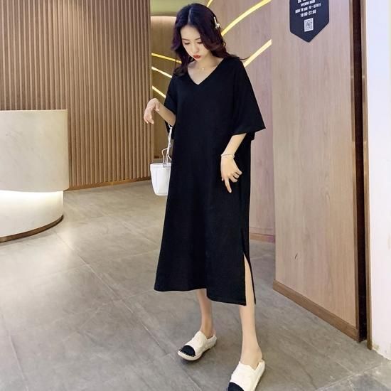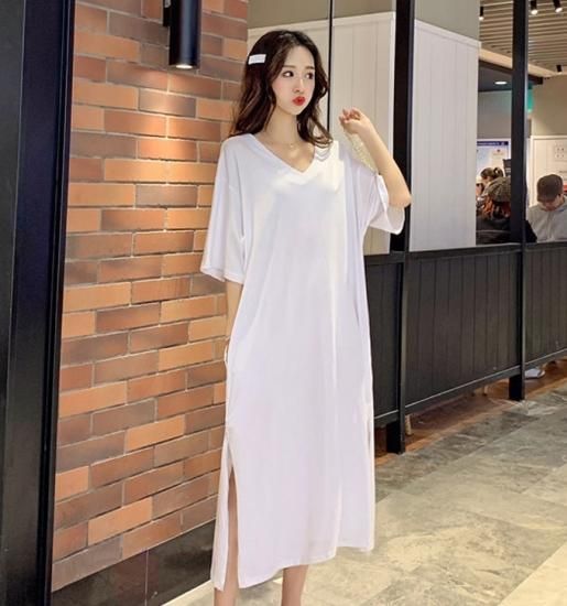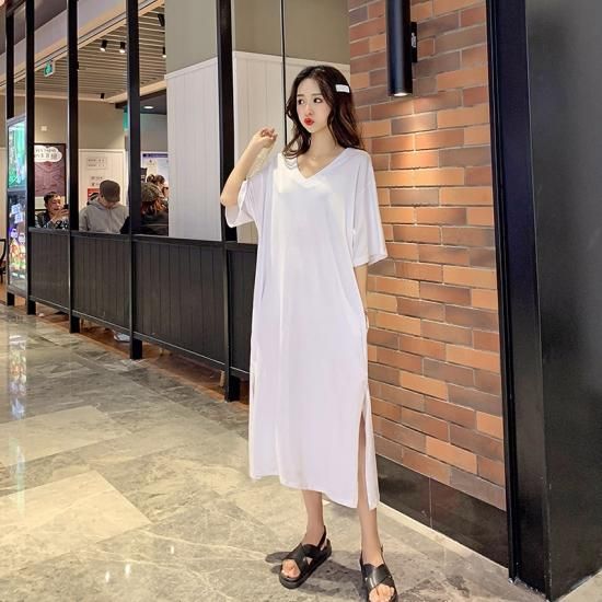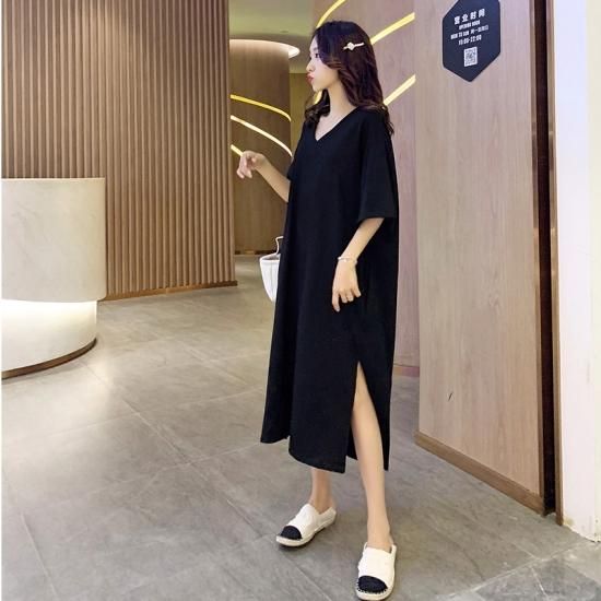 トレンドのビッグシルエット◇シンプル Tシャツロングワンピース 2色 大きいサイズあり