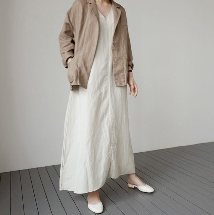 リネンライクなナチュラルテイスト◇大人カジュアル ロングワンピース