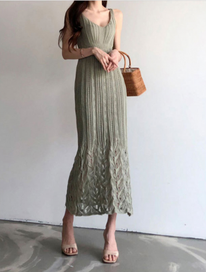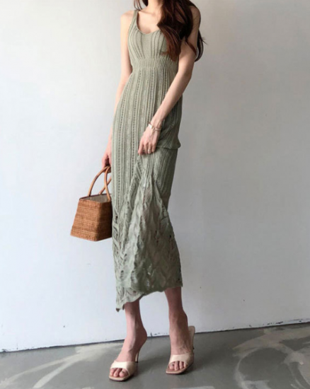 きれいめカジュアル◇美シルエット ノースリーブ ロングワンピース 3色