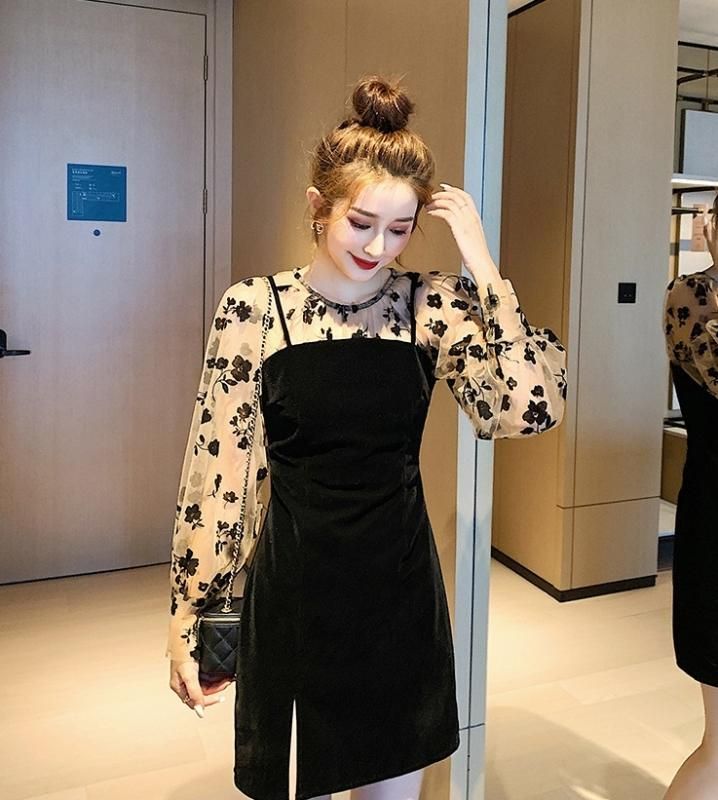 異素材ミックスコーデがかわいい◇シースルーブラウス&キャミワンピース セットアイテム