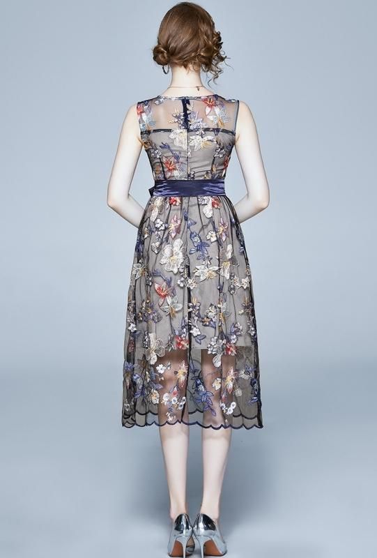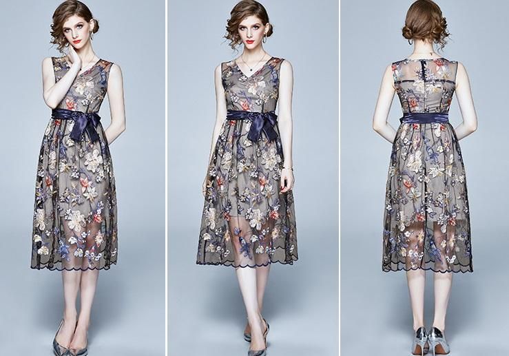 レース&シースルーの上品およばれワンピ♪フレアワンピース 大きいサイズあり
