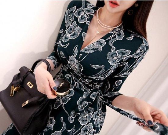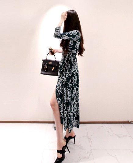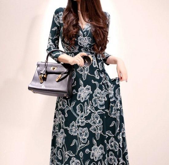 エレガントな大判ボタニカル柄がおしゃれ カシュクールのマキシ丈スリットワンピース
