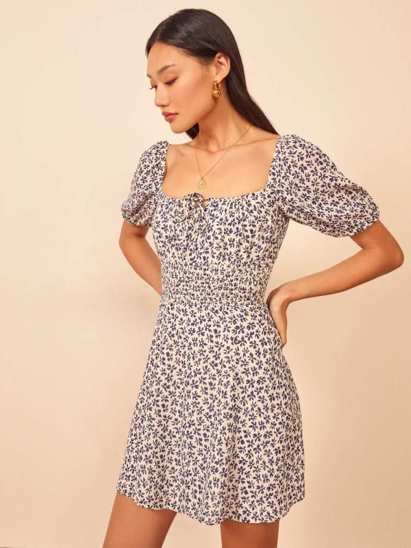春夏のお出かけやリゾートコーデに 小花柄がかわいいスクエアネックの半袖ミニワンピース