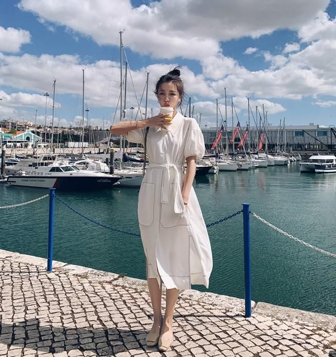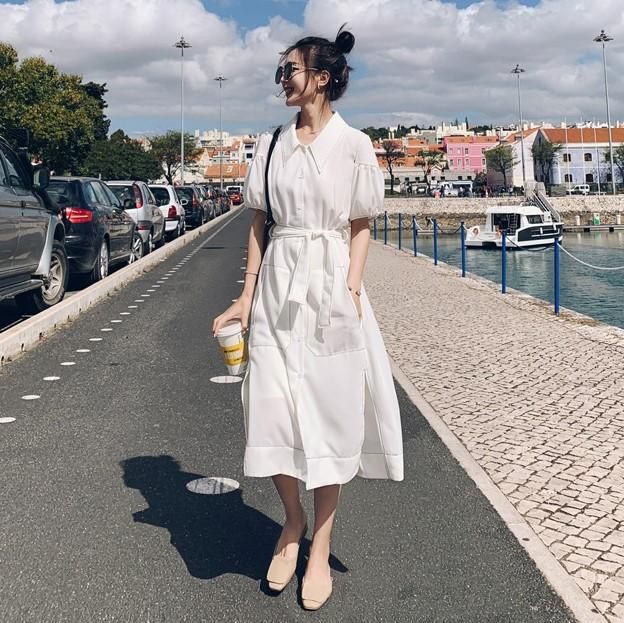 春夏のお出かけコーデにおすすめ 清楚かわいいパフスリーブの半袖シャツワンピース
