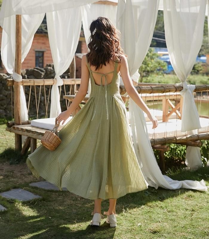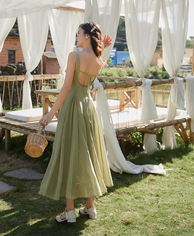 後ろ姿までおしゃれ 大胆な背中見せのきれいめロングのフレアワンピース 2色