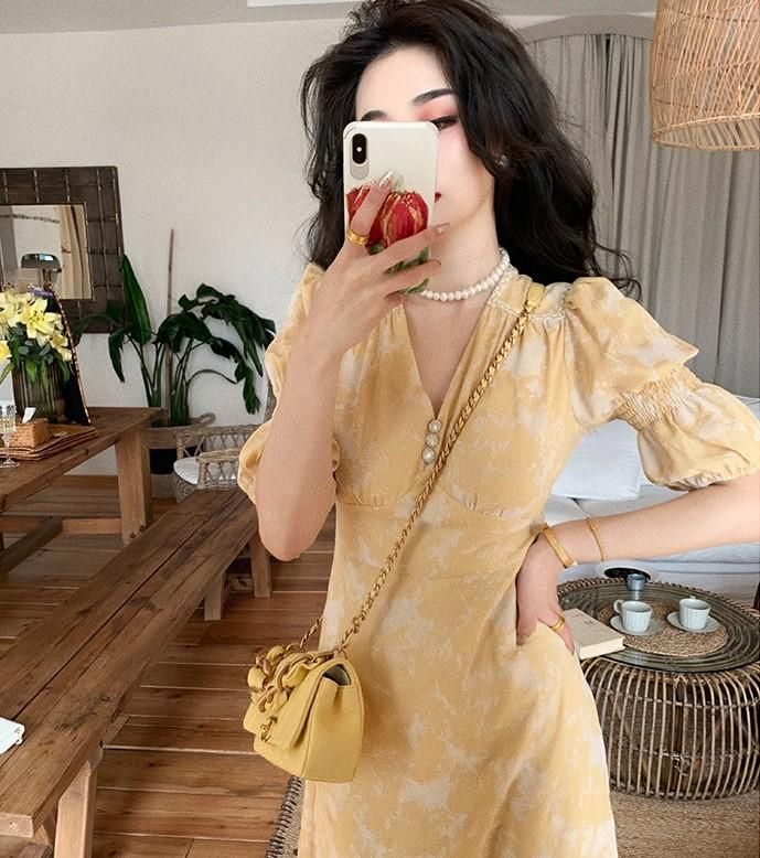 お呼ばれコーデにおすすめ たっぷりギャザーのタイダイ柄袖ありロングワンピース 2色