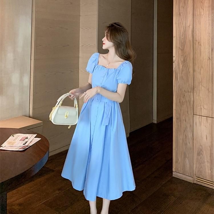 2way使える人気アイテム フレアなAラインのベルト付きパフ袖ミディアムワンピース 3色