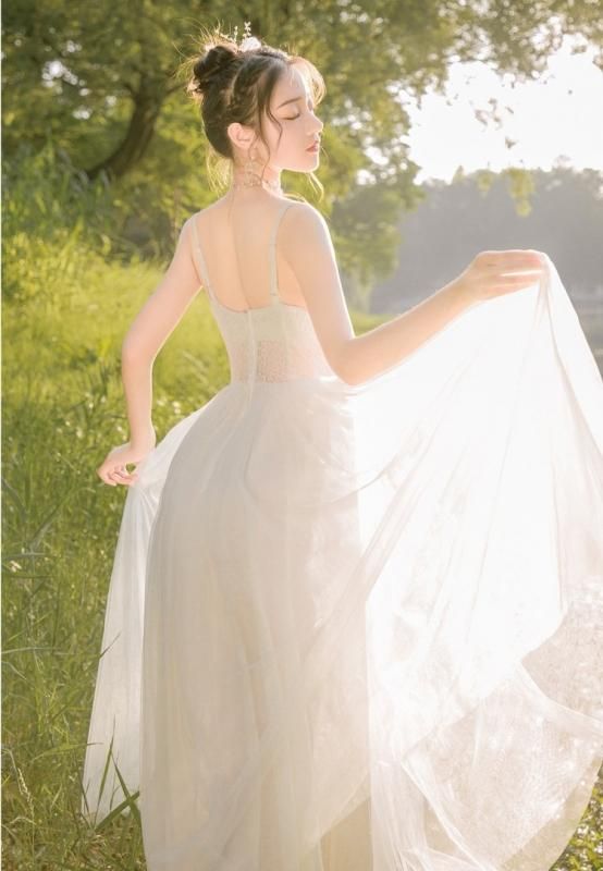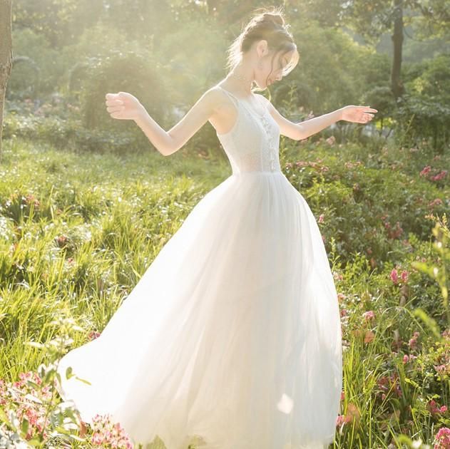 リゾートウエディングにもおすすめ フェミニンな透かしレーストップのマキシ丈フレア白ドレス