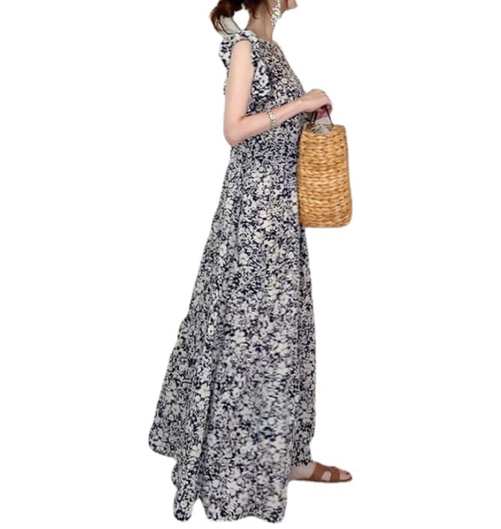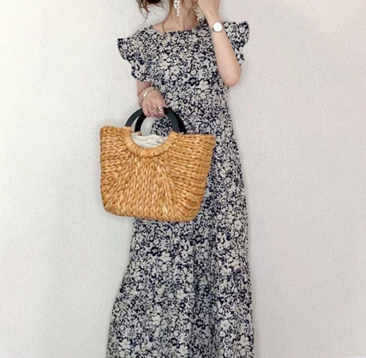 ゆったりカジュアルなリゾートスタイル フリルスリーブのマキシ丈モノトーンワンピース