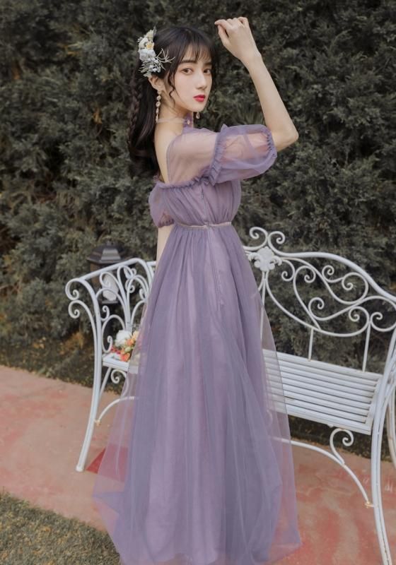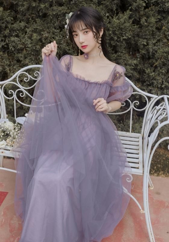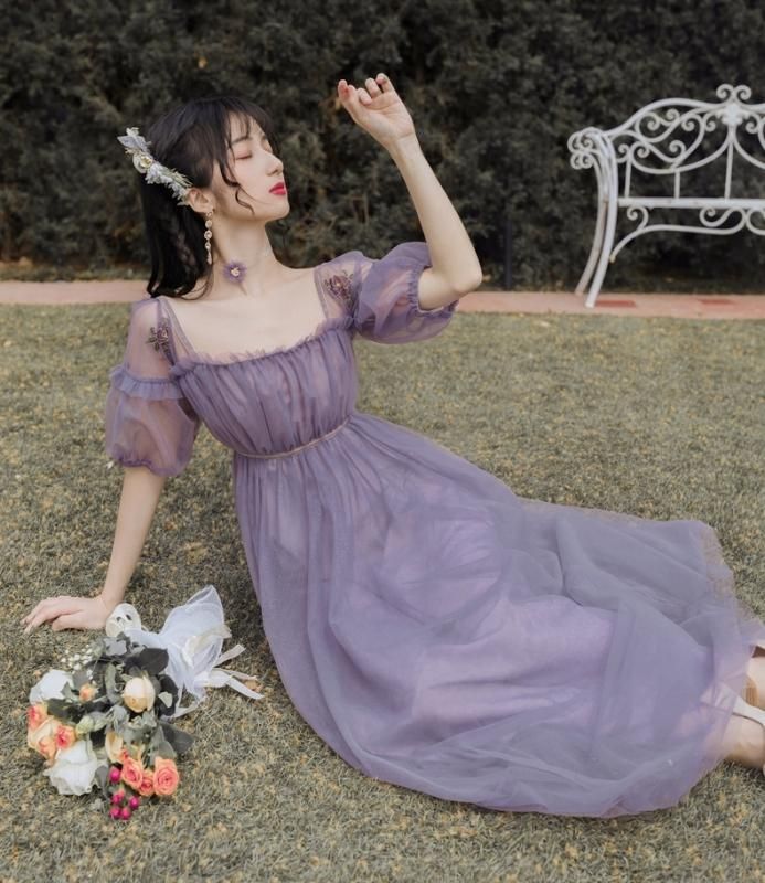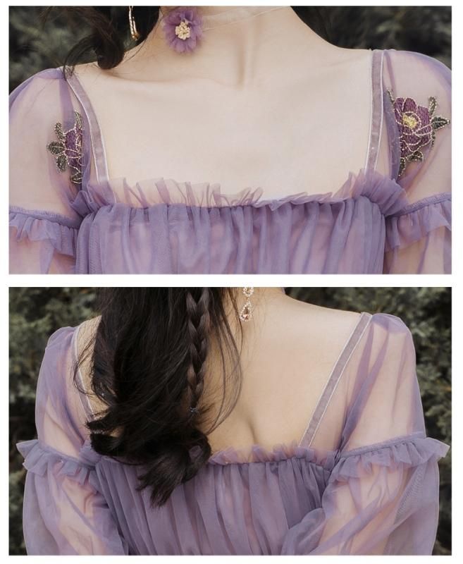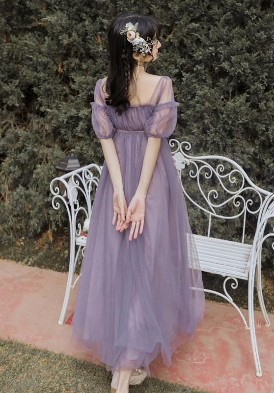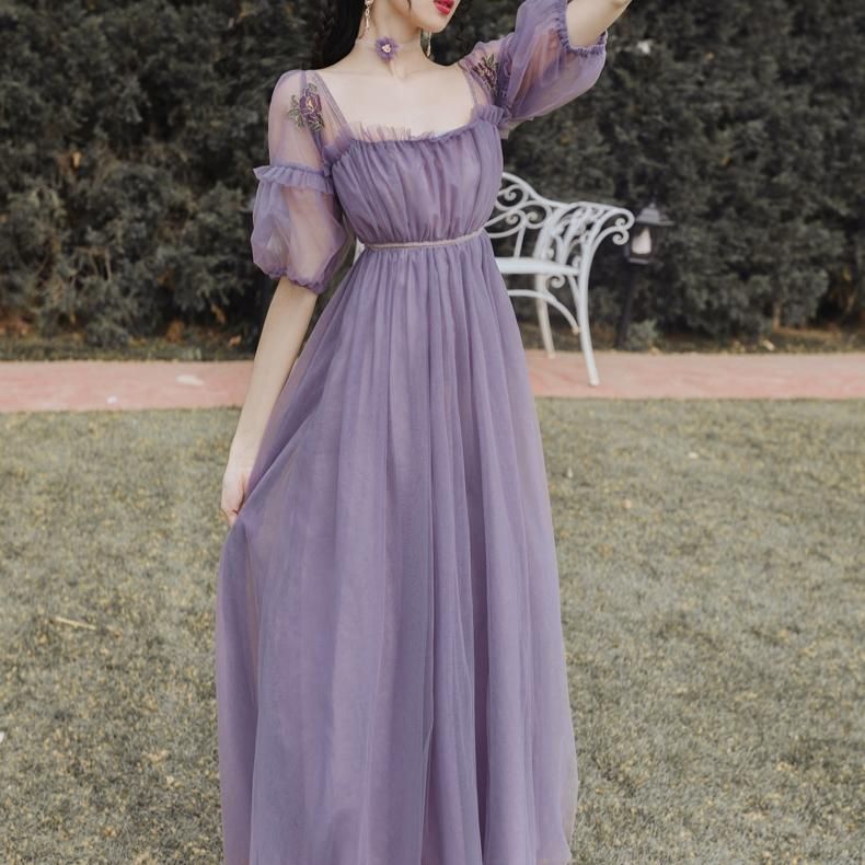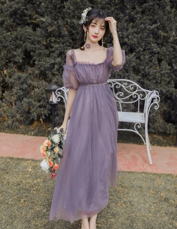 特別感のある海外デザイン 上品かわいい透け感シフォンのマキシ丈ギャザードレス ワンピース