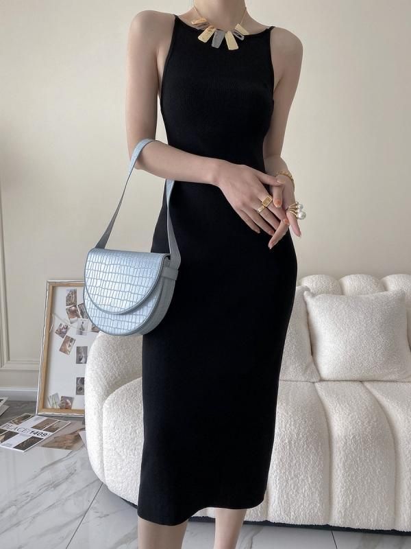 上品セクシーな大人スタイル タイトシルエットのロング丈きれいめキャミソールワンピース 2色