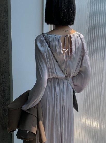 トレンドのバックコンシャス ゆったりマキシ丈の長袖ギャザーワンピース 3色