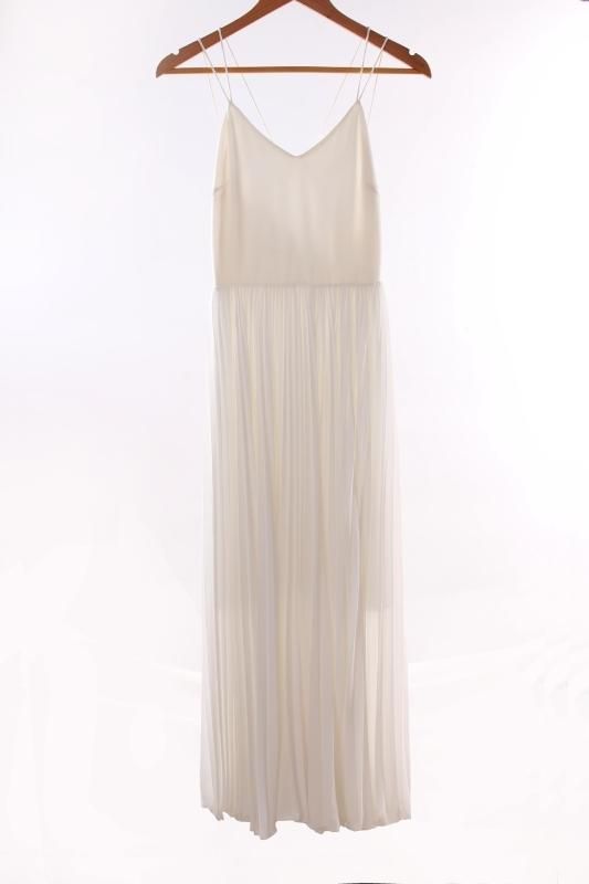 XS〜Lのサイズ展開 シアープリーツがフェミニンなバックコンシャスのマキシ丈キャミソールドレス ワンピース 2色