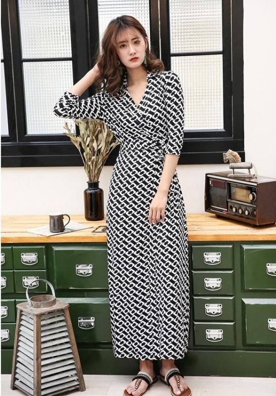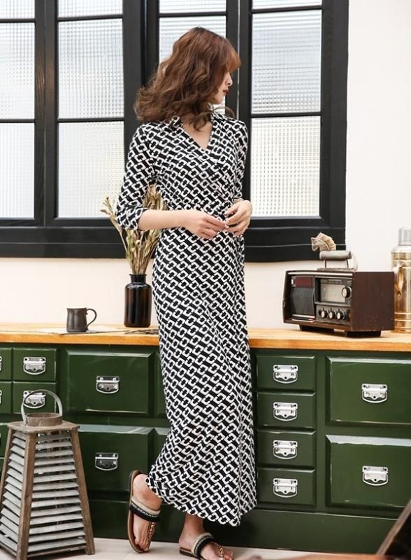 XS〜XLの豊富なサイズ展開 モノトーンのロング丈長袖襟付きモード系ワンピース