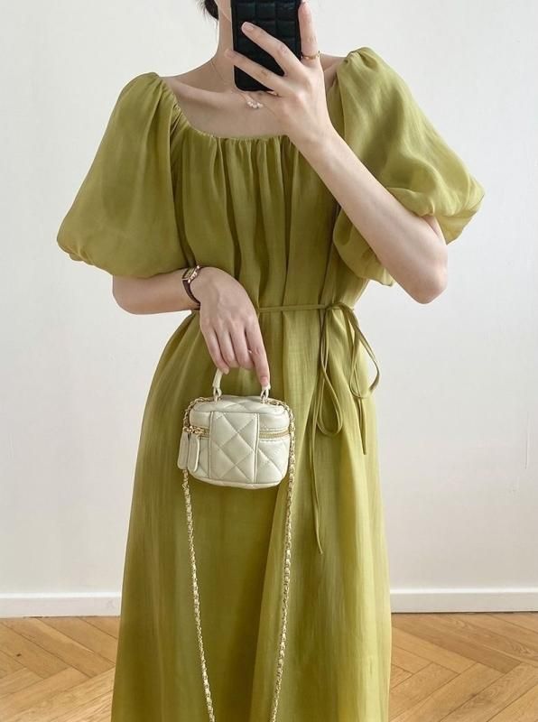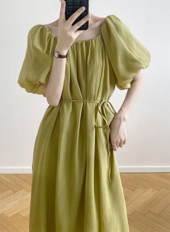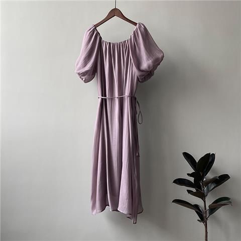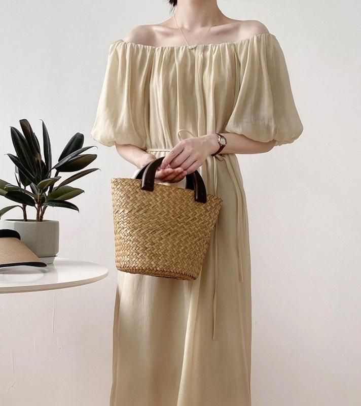 オフショルダーでフェミニンに ふんわりギャザーのロング丈袖あり2wayワンピース 3色