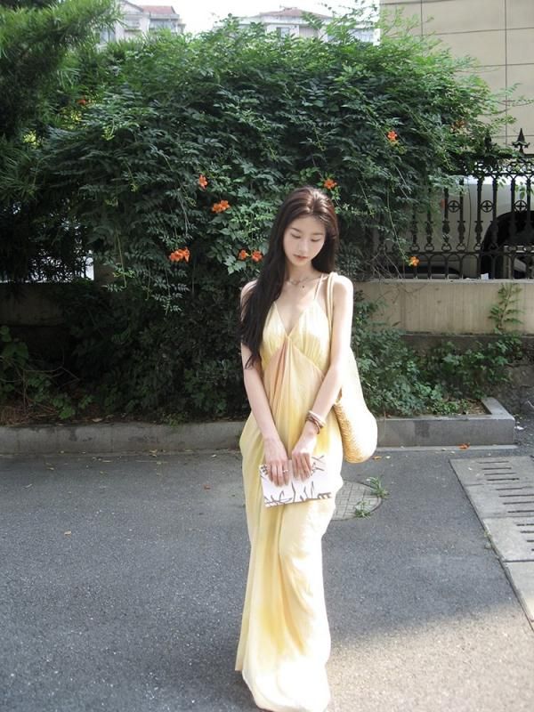 オトナ女子のリゾートコーデ ロング丈キャミソールギャザーワンピース ドレス