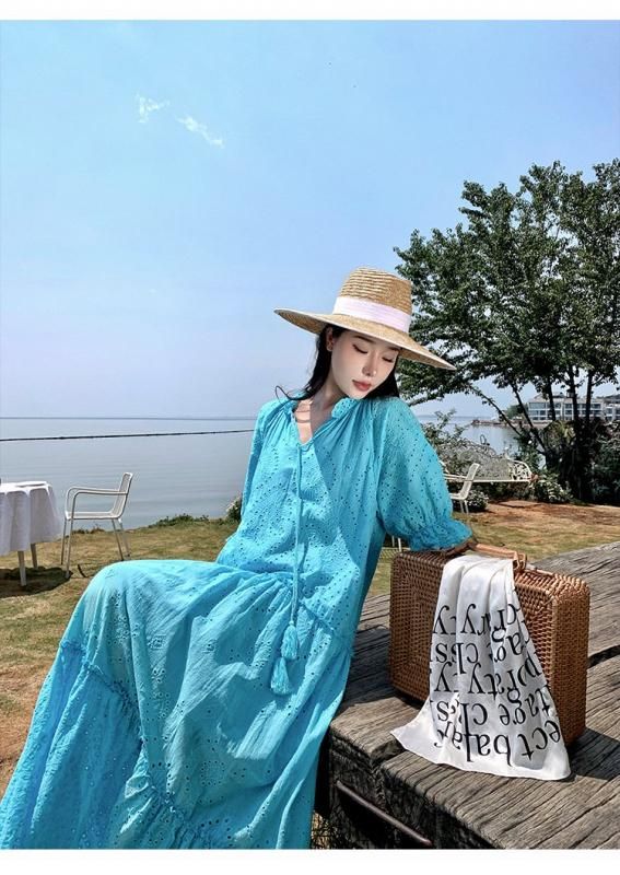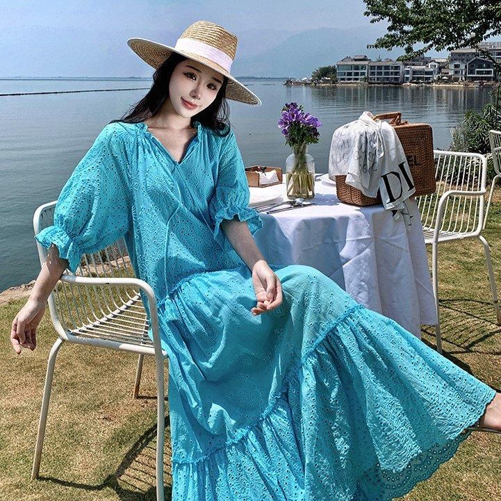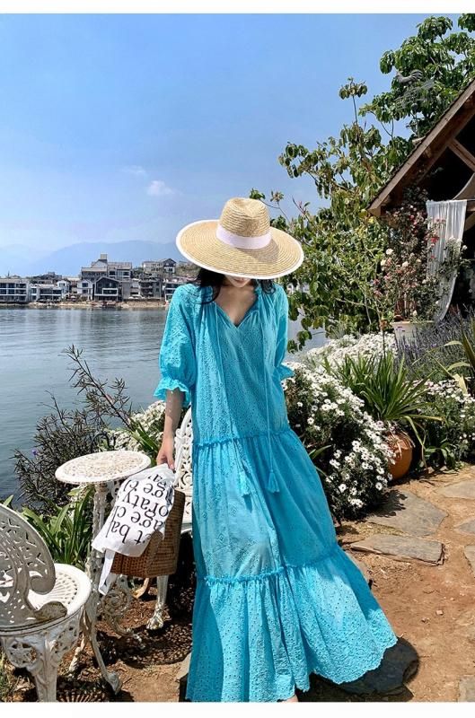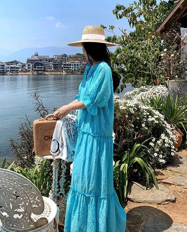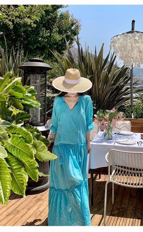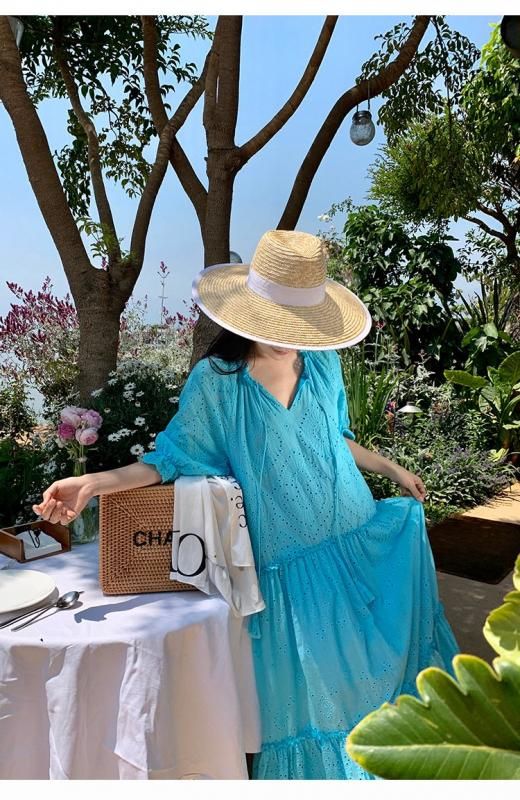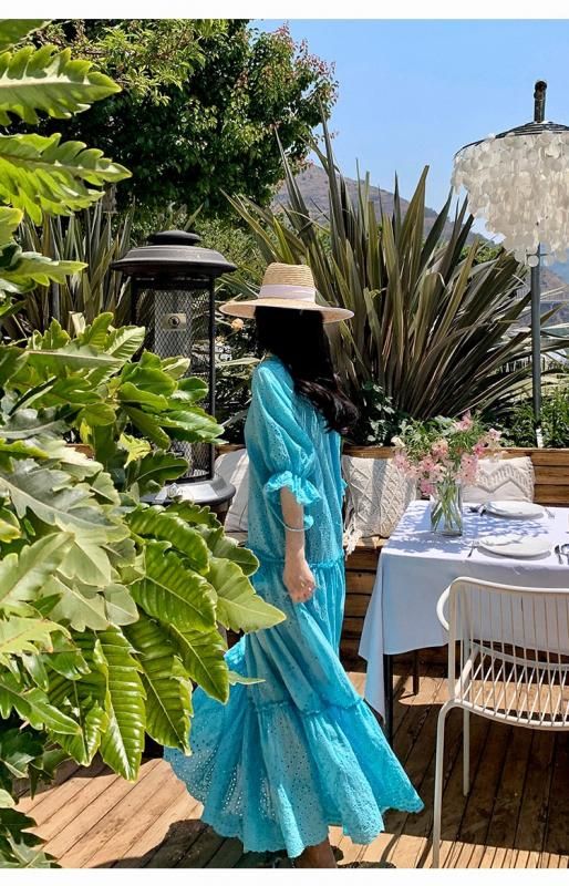 おしゃれに体型カバー ゆったりティアードスカートのロングワンピース リゾートドレス