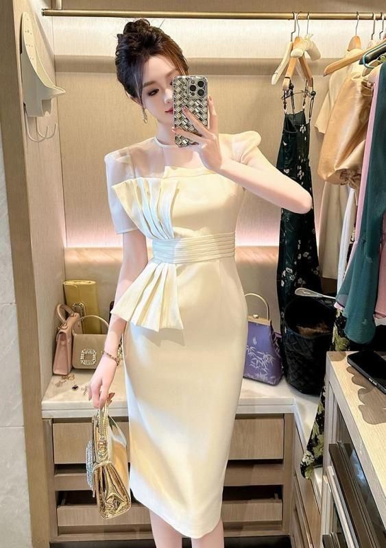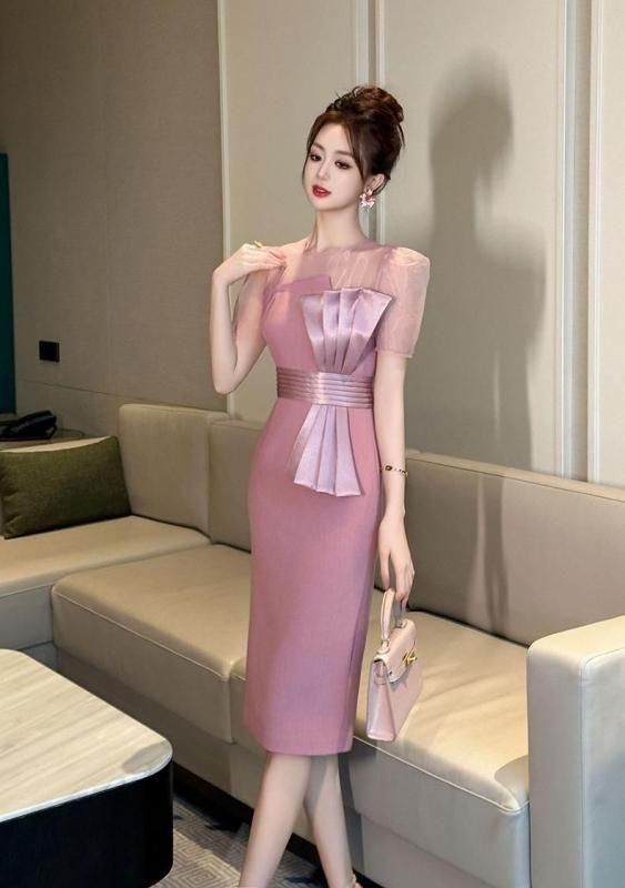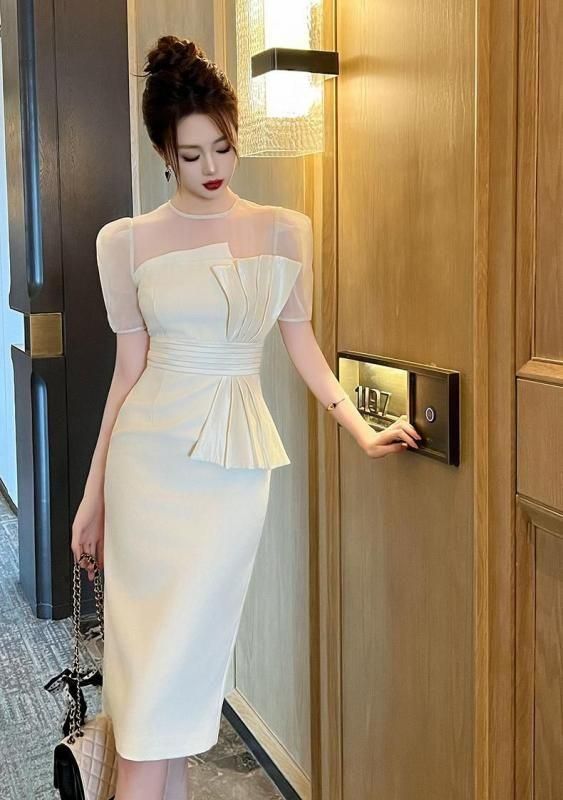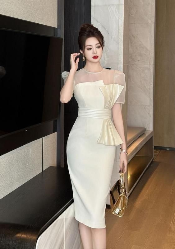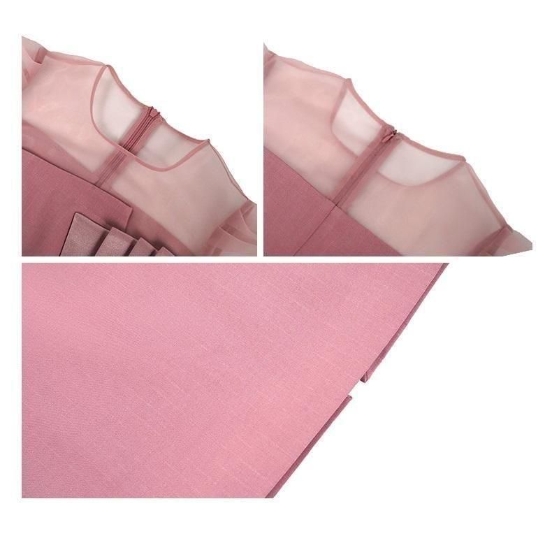 アシンメトリーなシアーミックスドレス ワンピース 2色 個性的 リゾート