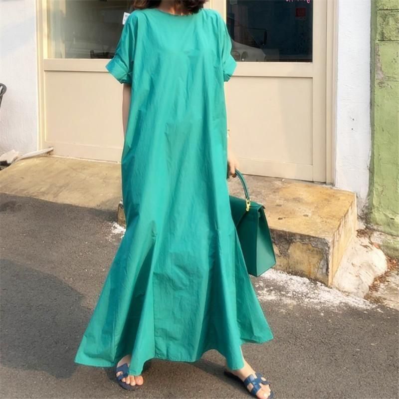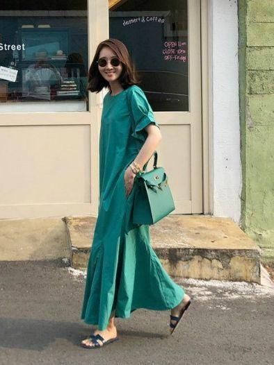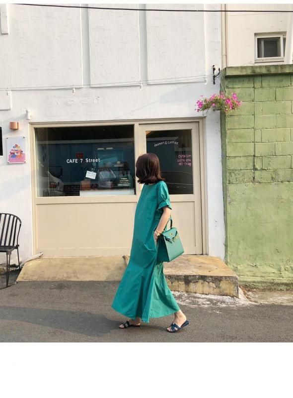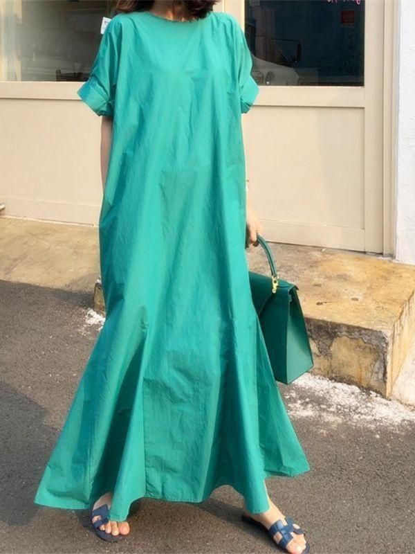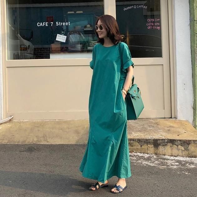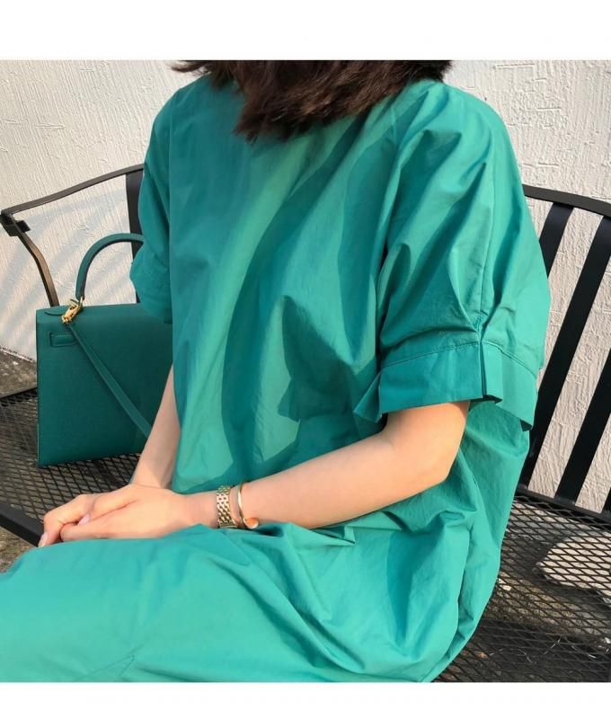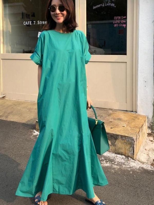 ビタミングリーンがおしゃれなゆったりロングワンピース