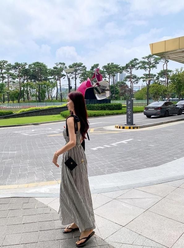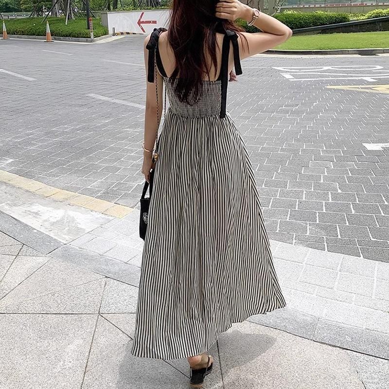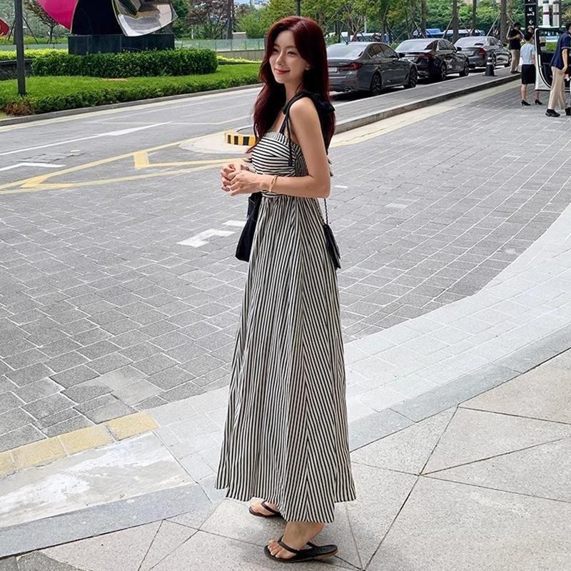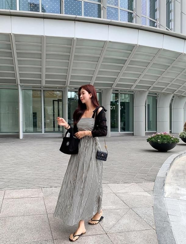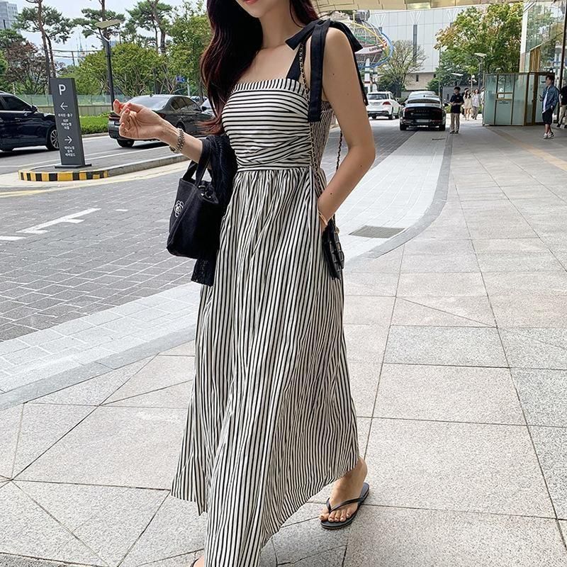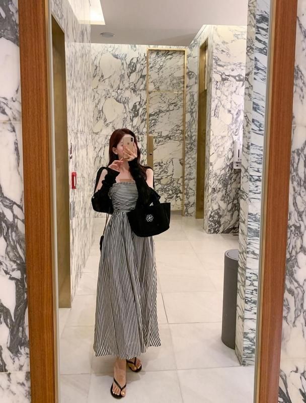ホワイト×ブラックのストライプがクールなフレアワンピ