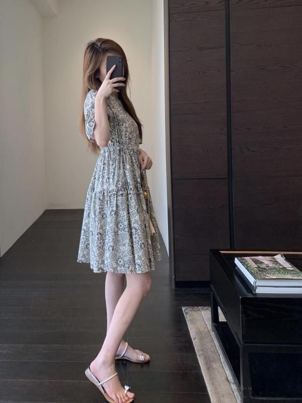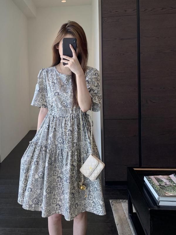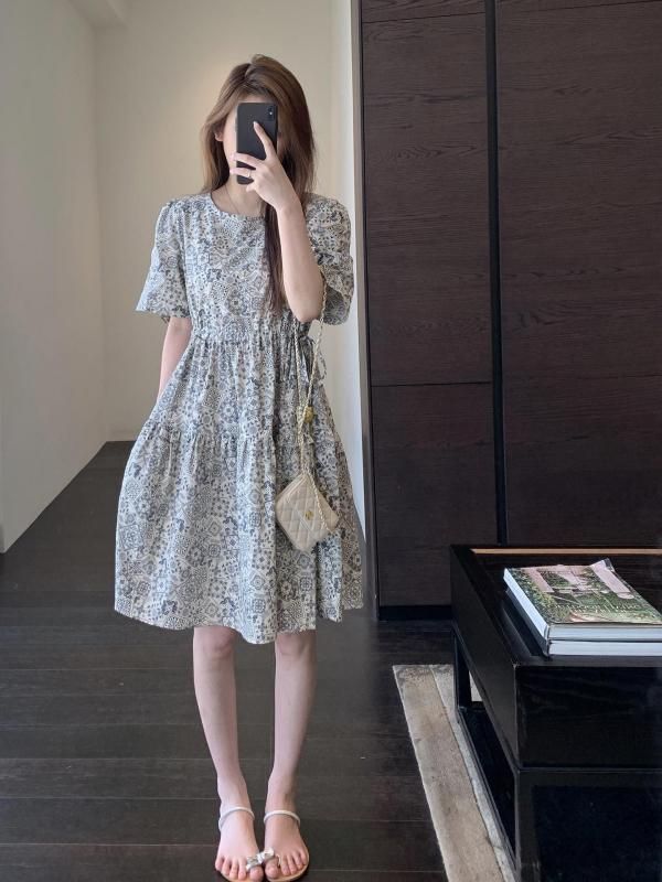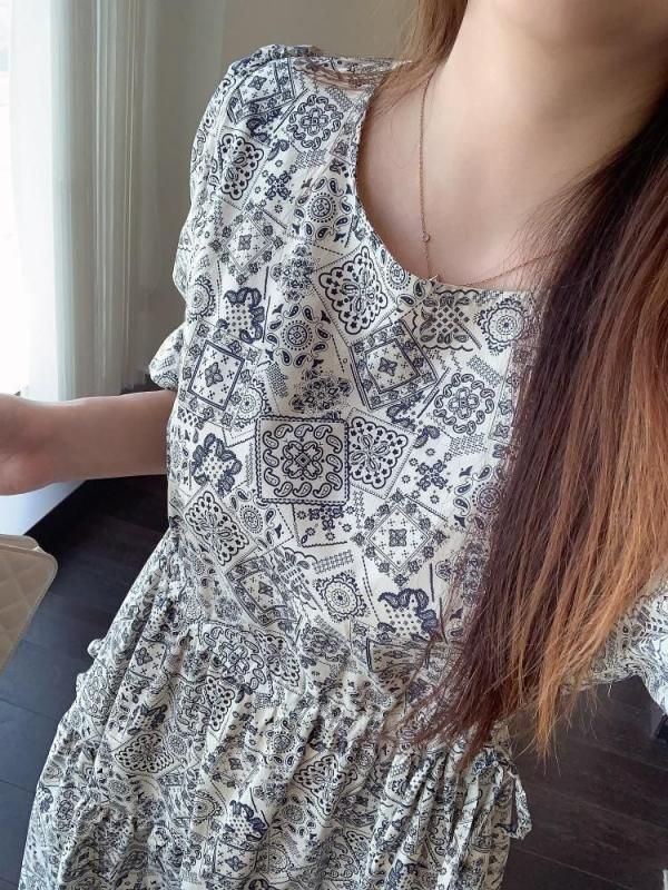 フレンチレトロなペイズリープリントワンピース 白