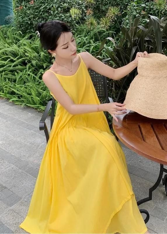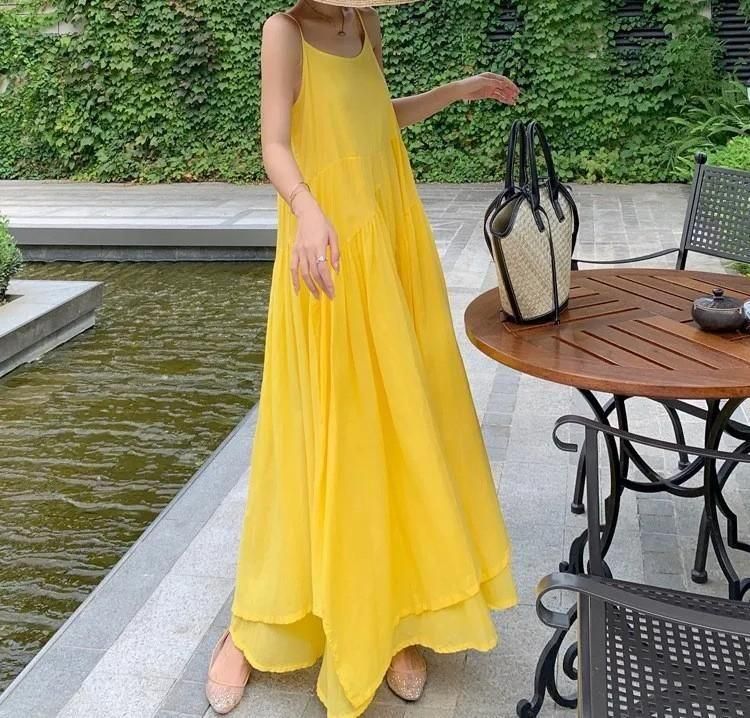 【即納】鮮やかなリゾートスタイル ふんわりティアードシフォンのマキシ丈キャミソールワンピース ドレス
