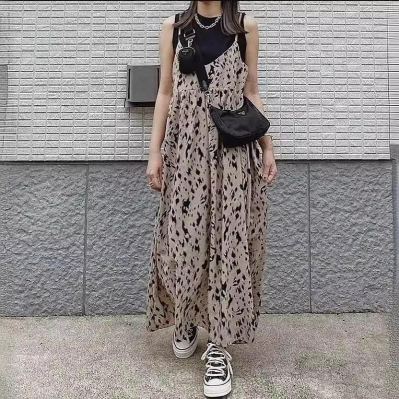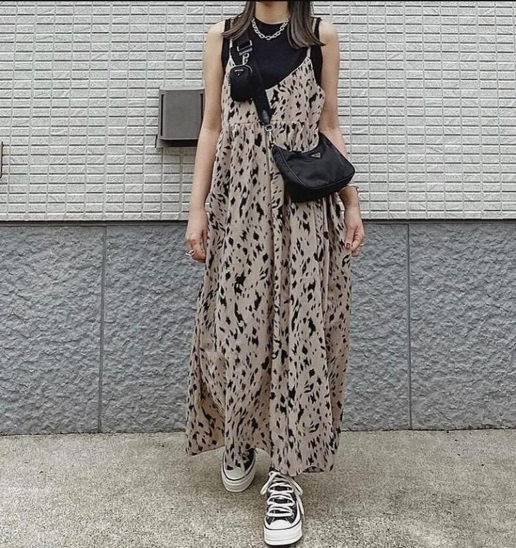 レオパードプリントがモードなロングワンピース 茶