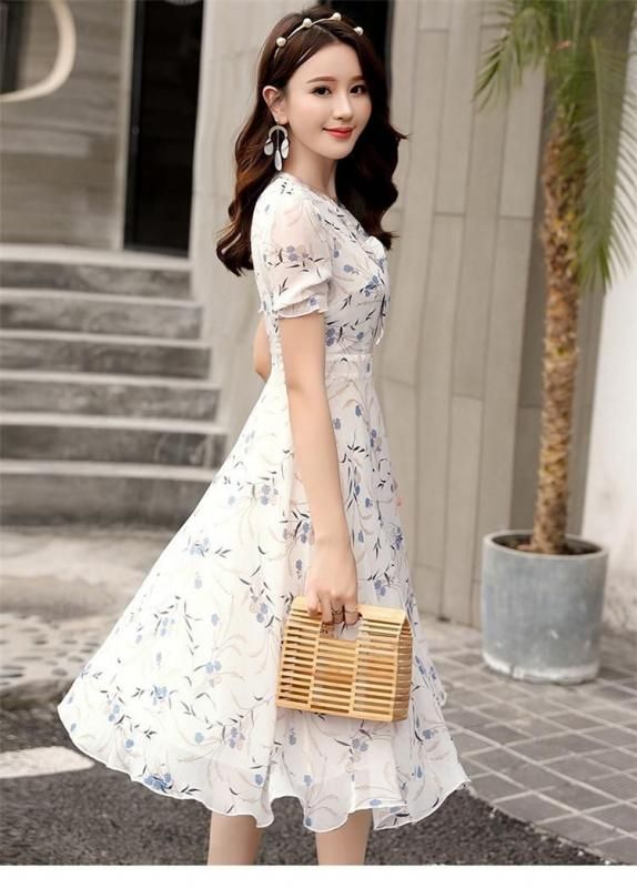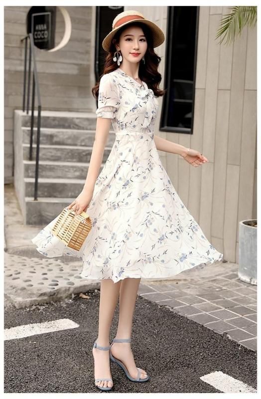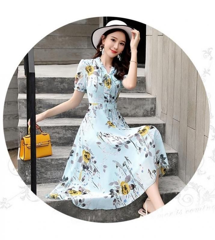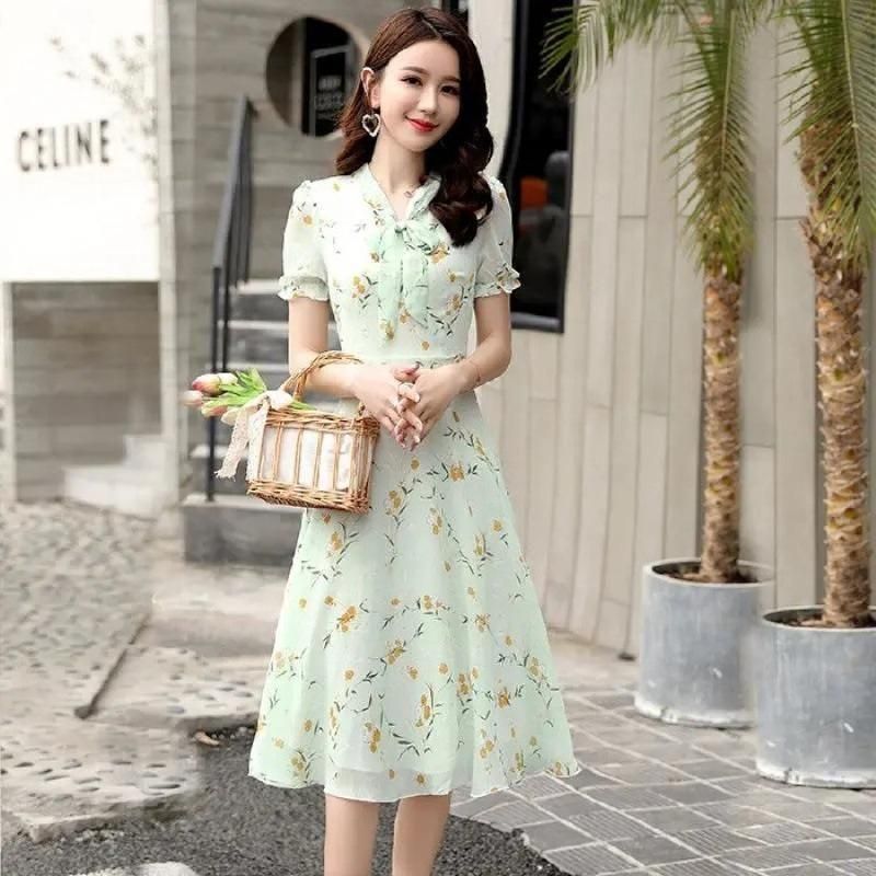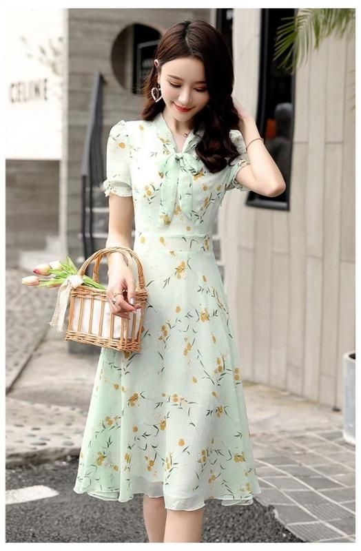 小花柄がキュートなボウタイ付きワンピース