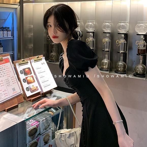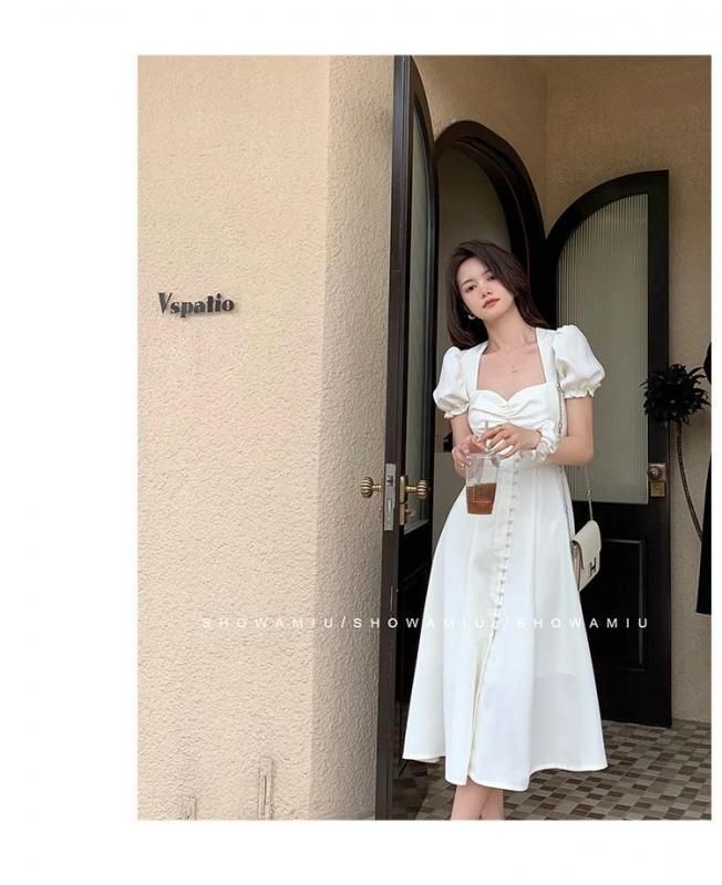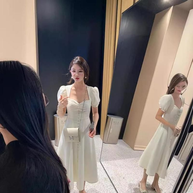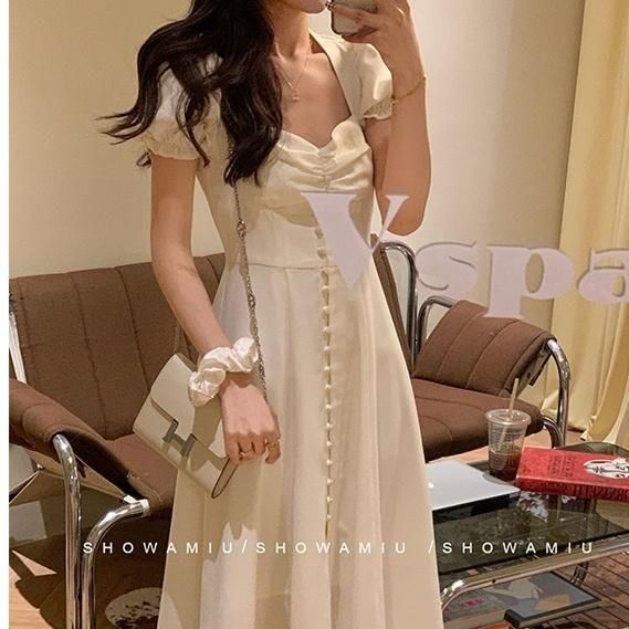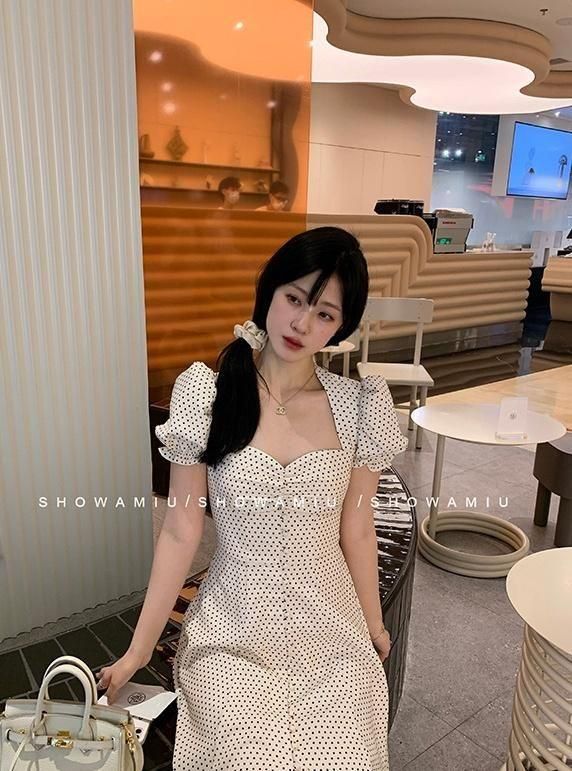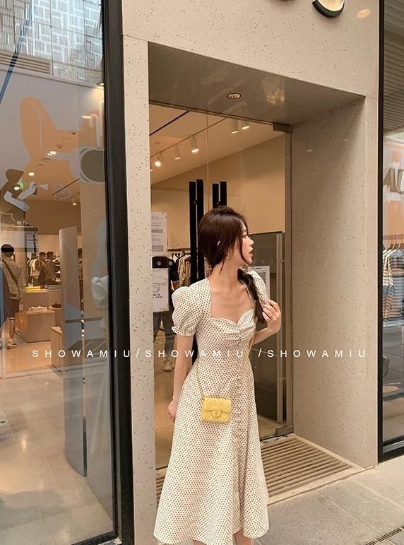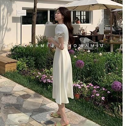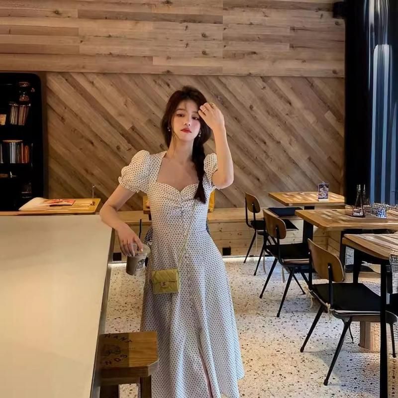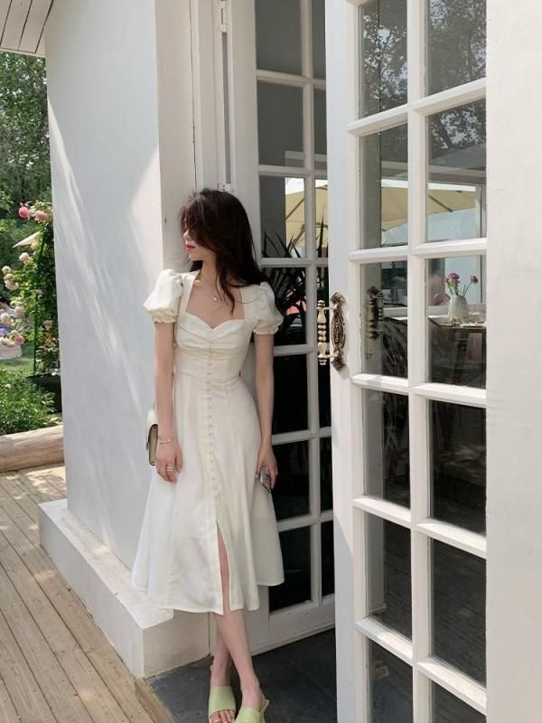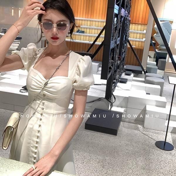 パフスリーブ×スクエアネックが大人可愛いワンピース