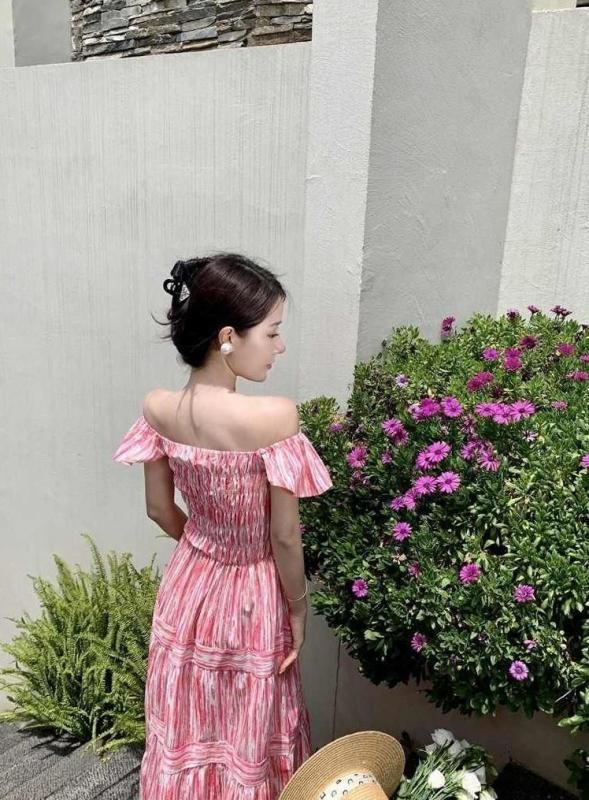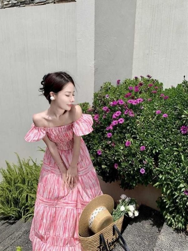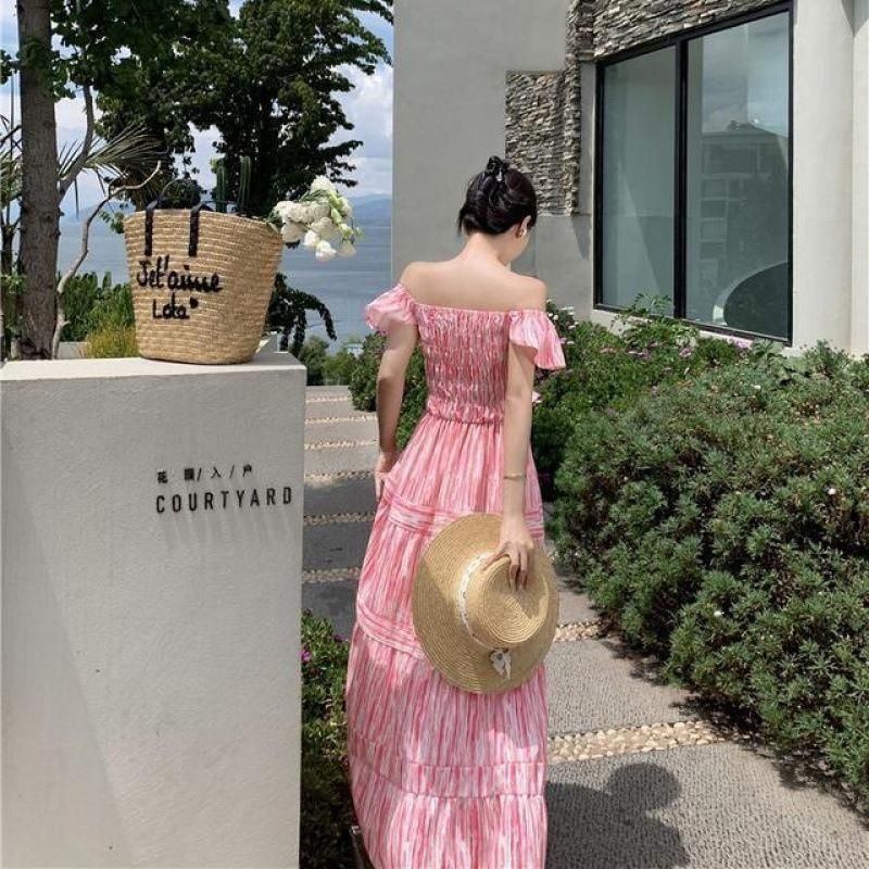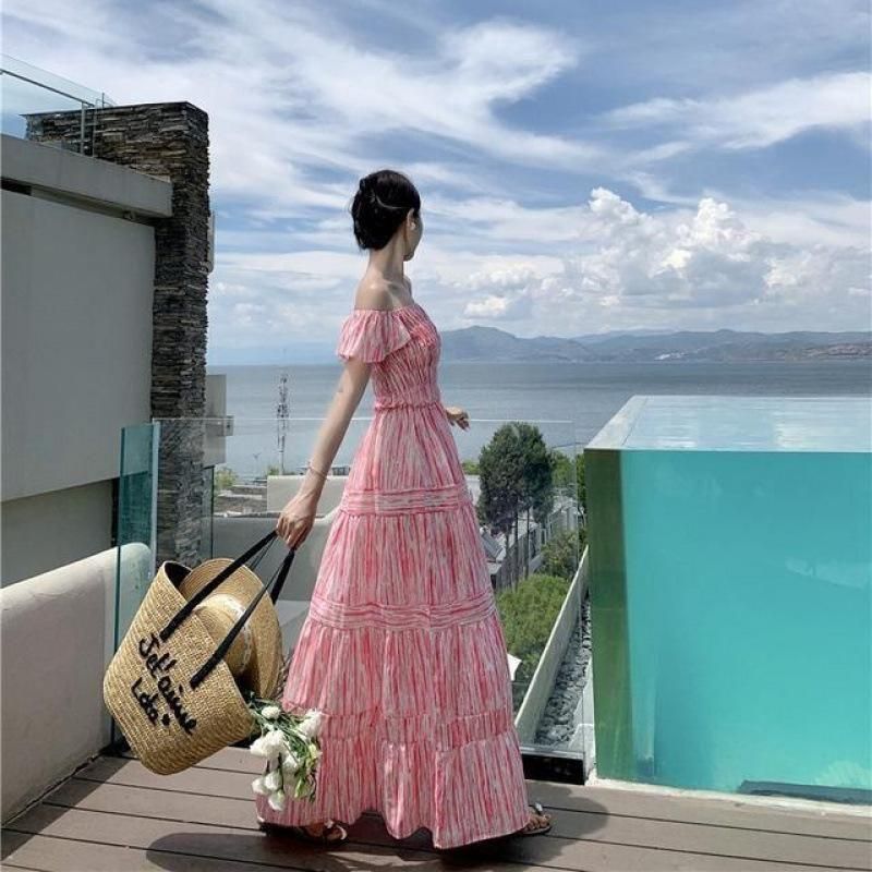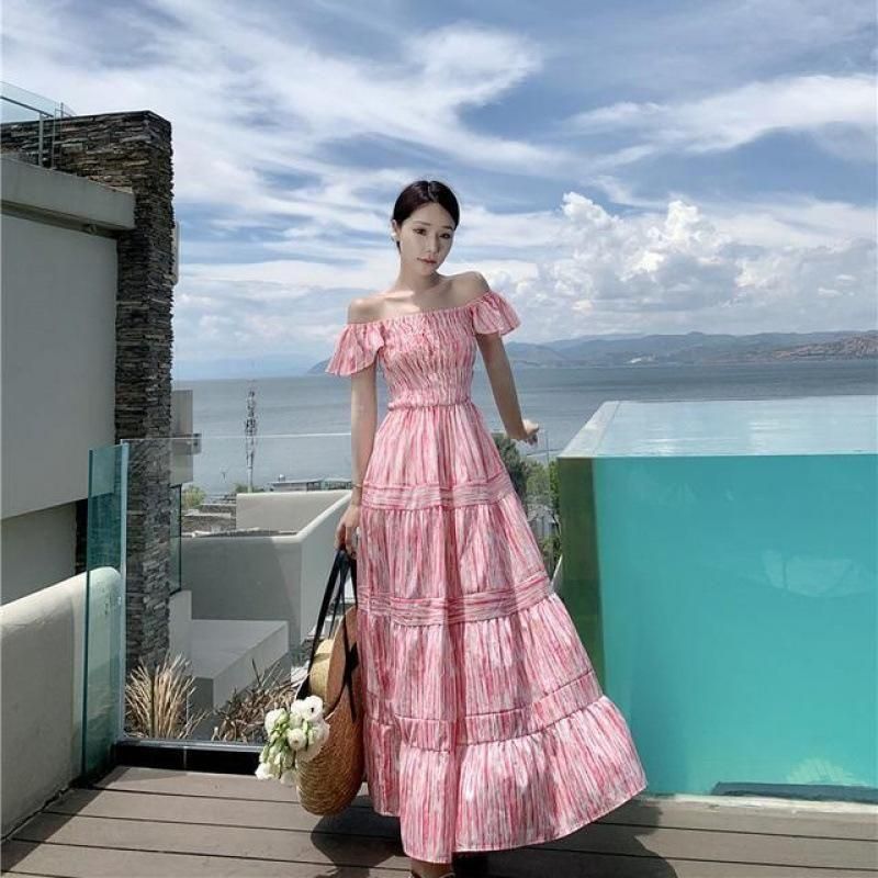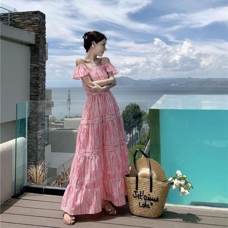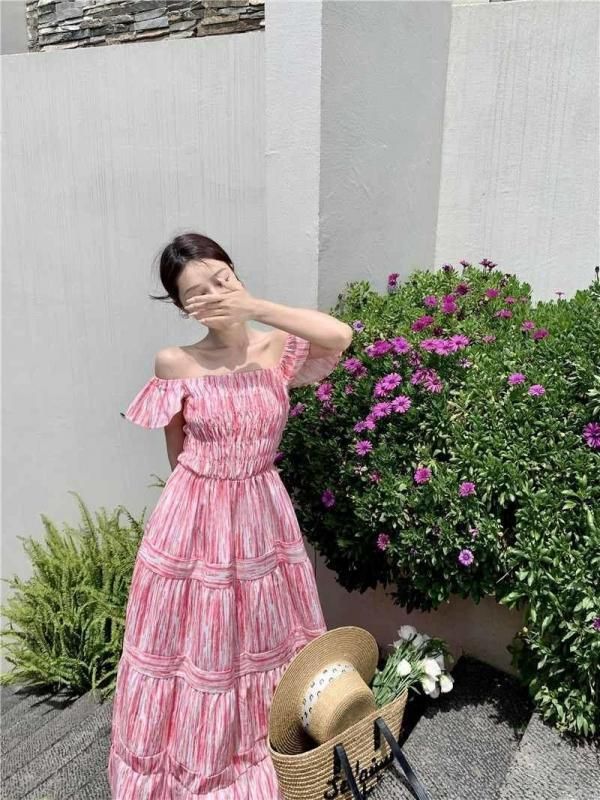 手書き風ストライプがおしゃれなオフショルダーワンピース